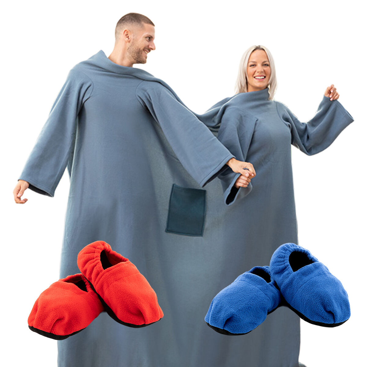 Pack Zapatillas de Casa Calentables en Microondas y Batamanta Doble con Bolsillo Central InnovaGoods