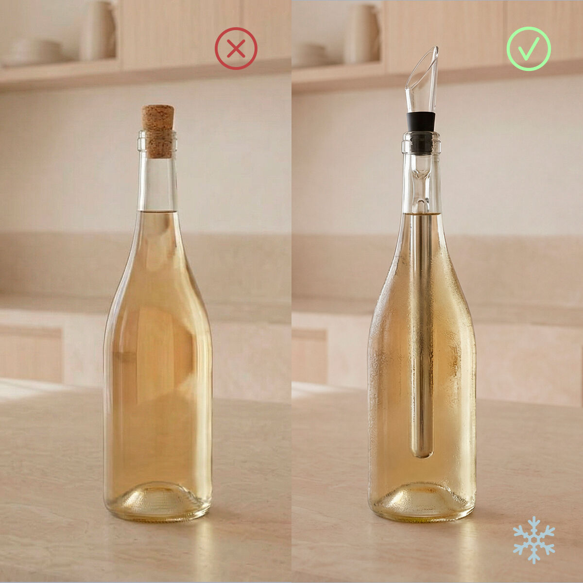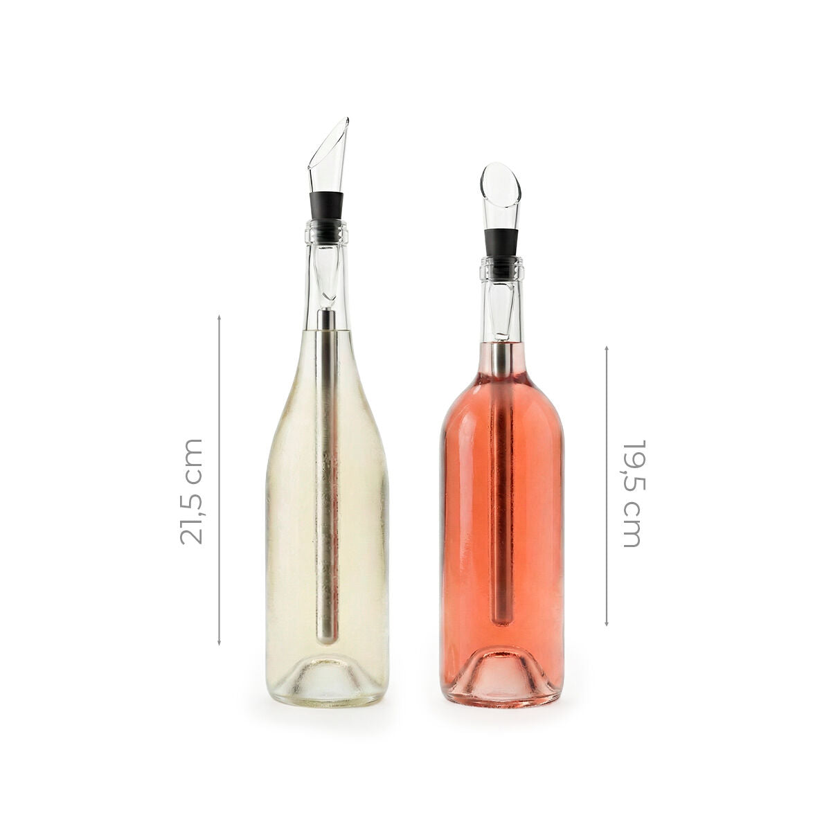 • ENFRIAR SIN DILUIR, DISFRUTAR SIN ESPERAR: Previa congelación, las 2 barras enfriadoras de acero inoxidable 304 de calidad (19,5 y 21,5 cm para distintas botellas) mantienen la temperatura ideal del vino (1-2 h aprox.). Fácil limpieza enjuagando bajo el grifo.