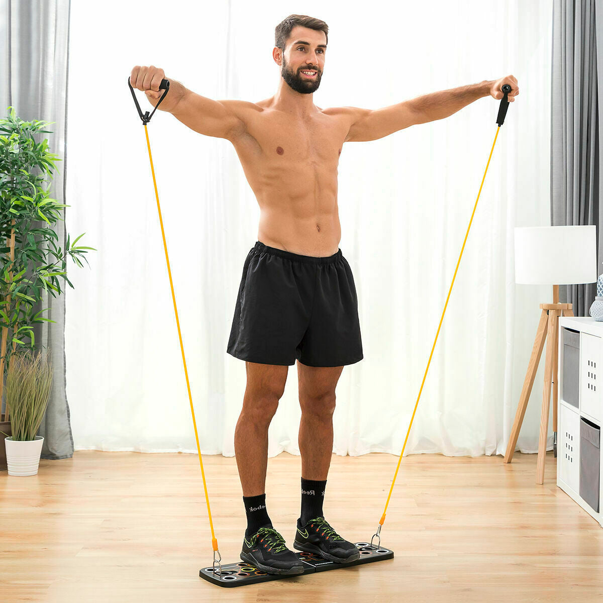 - Tabla de Flexiones Push-Up con Bandas de Resistencia y Guía de Ejercicios