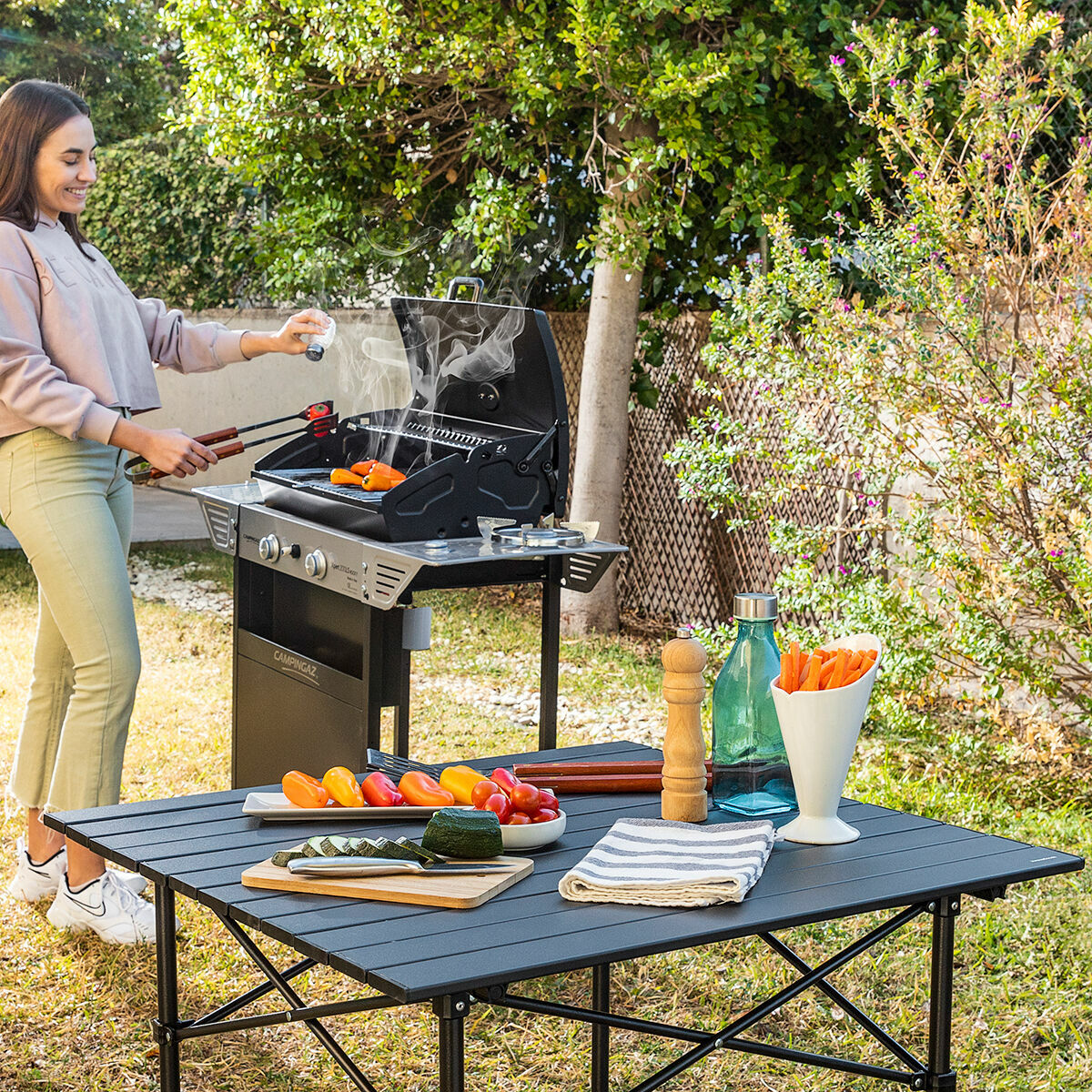 An extremely robust, stable and lightweight portable picnic table with non-slip feet. Ideal for sharing fantastic moments at campsites, barbecues, garden, beach, terrace, etc.
