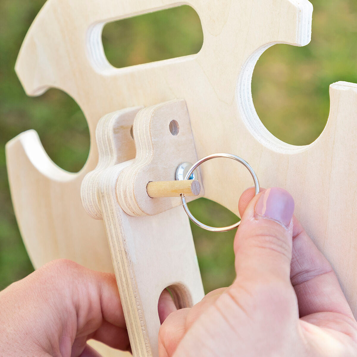 Une table à vin d’extérieur portable et pliable, idéale pour un moment de détente avec un bon vin et en bonne compagnie. La solution idéale pour ne pas avoir à poser le vin, les verres ou les en-cas sur le sol et éviter les insectes, les renversements, la saleté, etc. Cette table originale en contreplaqué de tilleul est résistante, légère et très facile à plier et à déplier pour une utilisation pratique ou pour un transport et un rangement faciles. Elle peut être facilement transportée et installée sur la plage, à la campagne, à la montagne, dans le jardin, etc. Il faut tout simplement planter le côté pointu de son pied unique dans le sol (terre ou sable), ce qui la rend est très facile à insérer et à retirer avec une fixation ferme. Sur sa surface de support plate, elle dispose d’un orifice pour placer une bouteille de vin et de deux orifices pour placer deux verres de pied, laissant de la place pour un petit bol d’en-cas ou d’apéritifs. Elle comporte également deux autres orifices (un sur la surface et un sur le pied) qui servent de poignées pour une prise en main et une manipulation faciles (un également comme poignée de transport). Elle se nettoie rapidement et facilement.