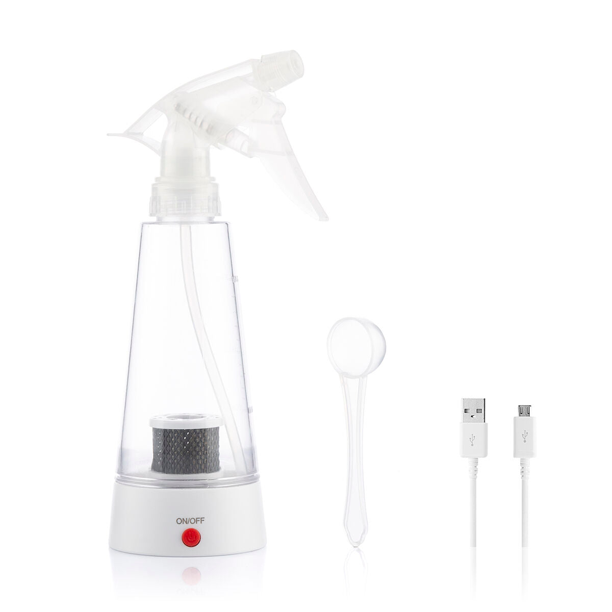 Bardzo skuteczny generator środka dezynfekującego za pomocą elektrolizy, który dzięki elektrolizowanej wodzie sterylizującej łatwo usuwa z powierzchni bakterie. Jego działanie polega na wymieszaniu w wodzie z kranu (200 ml) soli niejodowanej (10 g), w wyniku czego otrzymuje się całkowicie naturalny roztwór o właściwościach dezynfekujących (100 razy lepszych od wybielacza) i odtłuszczających (silny środek czyszczący). Wystarczy wlać wodę i sól do zbiornika, nacisnąć przycisk on/off, który aktywuje proces i odczekać aż po ok. 5 minutach zgaśnie niebieskie światełko, oznaczające zakończenie procesu przemiany w podchloryn sodu.