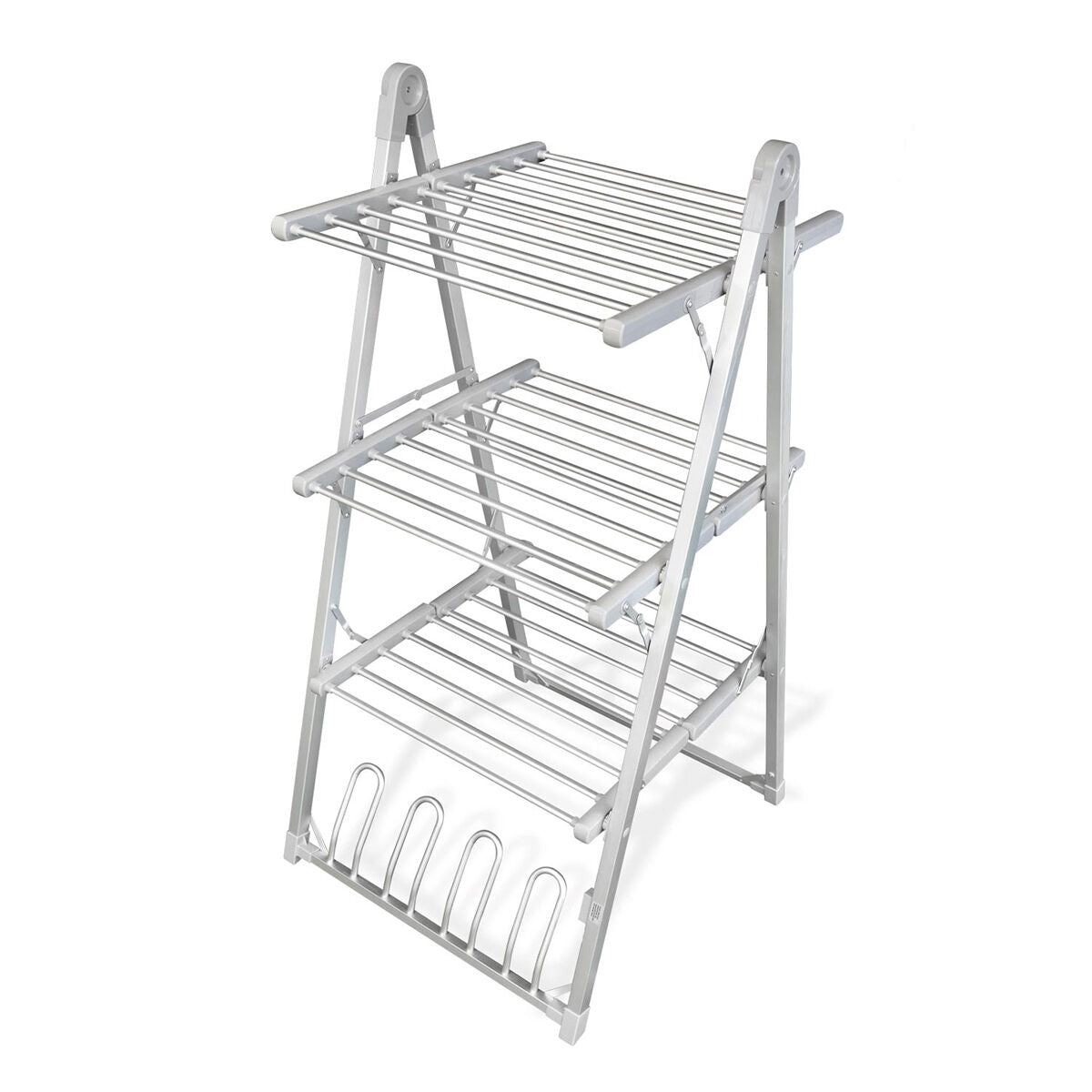 Um cómodo e prático estendal de interior para secar a roupa com maior rapidez e ocupando o mínimo espaço. Ideal para o inverno, especialmente em dias de frio, chuva ou humidade. Além disso, pode ser utilizado como estendal normal, sem estar ligado à rede elétrica.