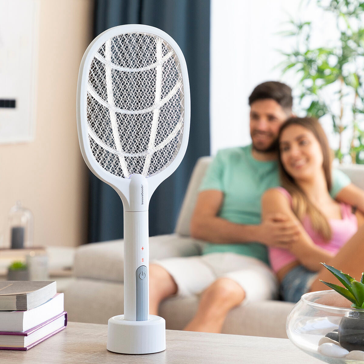 Akumulatorski lopar za ubijanje žuželk z visoko učinkovito UV svetlobo za enostavno odstranjevanje muh, komarjev in drugih letečih žuželk na čist in ekološki način (okolju prijazno), brez vonja ali kemičnih sestavin, ki sicer škodujejo zdravju in onesnažujejo okolje. Zaradi svoje izvirne in vsestranske večnamenske zasnove se lahko uporablja na 2 načina, ročno kot električni lopar za ubijanje žuželk ali kot UV žarnica proti komarjem in drugim žuželkam. Njegova šibka UV svetloba privlači žuželke, zaradi česar je še posebej učinkovita v temi, ob tem pa ne moti ali vpliva na spanec. Žuželke ob stiku z notranjim električnim omrežjem poginejo, pritegnili jih UV svetloba ali udarec z loparjem. Ima zunanje zaščitne mreže in dvojno stikalo za popolno varnost, ki preprečuje električni udar med uporabo ali rokovanjem. Ker je lahek, polnilni in prenosen, ga lahko postavite na katero koli ravno, stabilno površino in ga z lahkoto vzamete kamorkoli, saj je primeren za notranjo in zunanjo uporabo. Podstavek za polnjenje služi tudi kot podpora, vse skupaj pa deluje kot sodoben dekoracijski element.